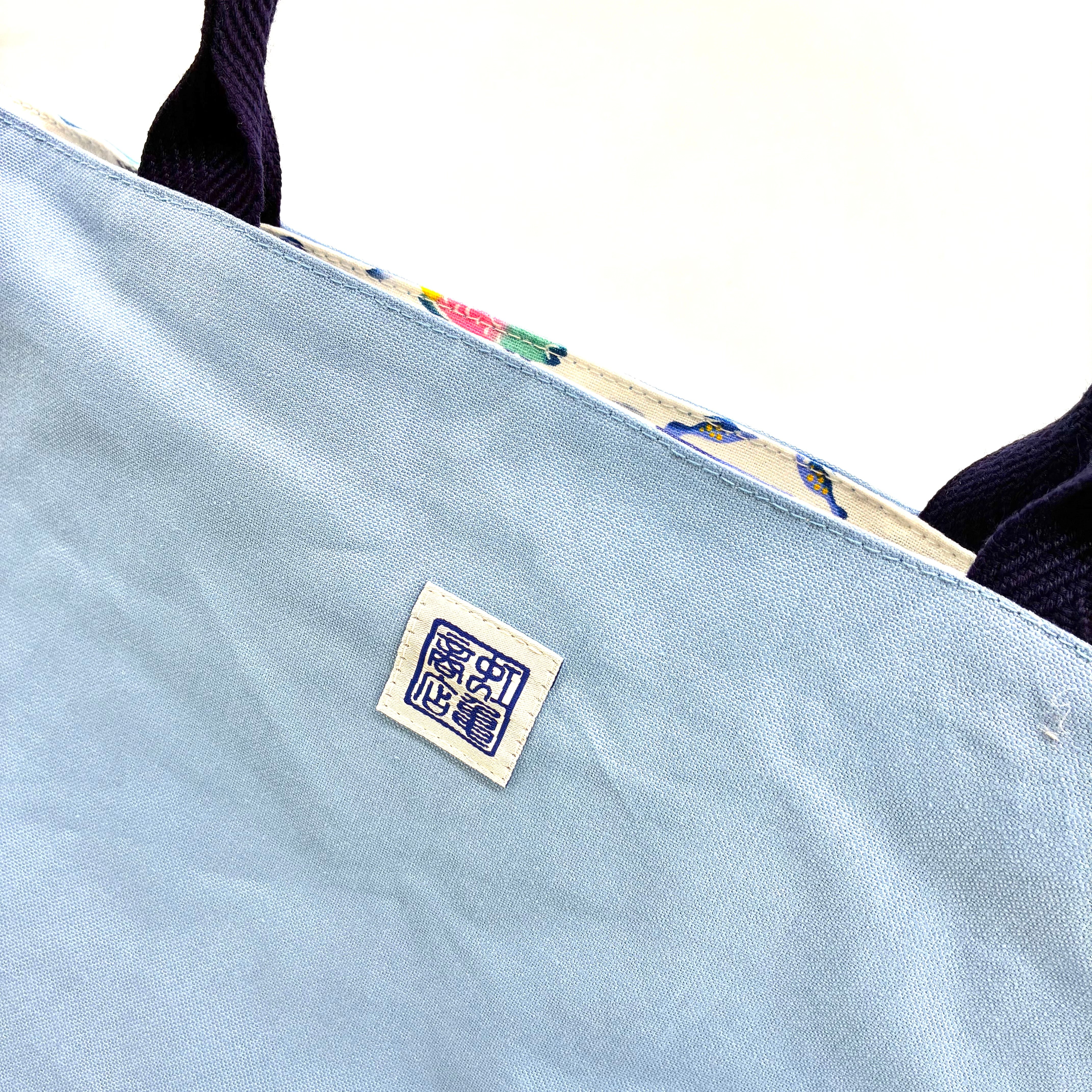 虹亀商店オリジナル紅型デザインのトートバッグMサイズは、肩からかけられる持ち手の長さが楽ちん!