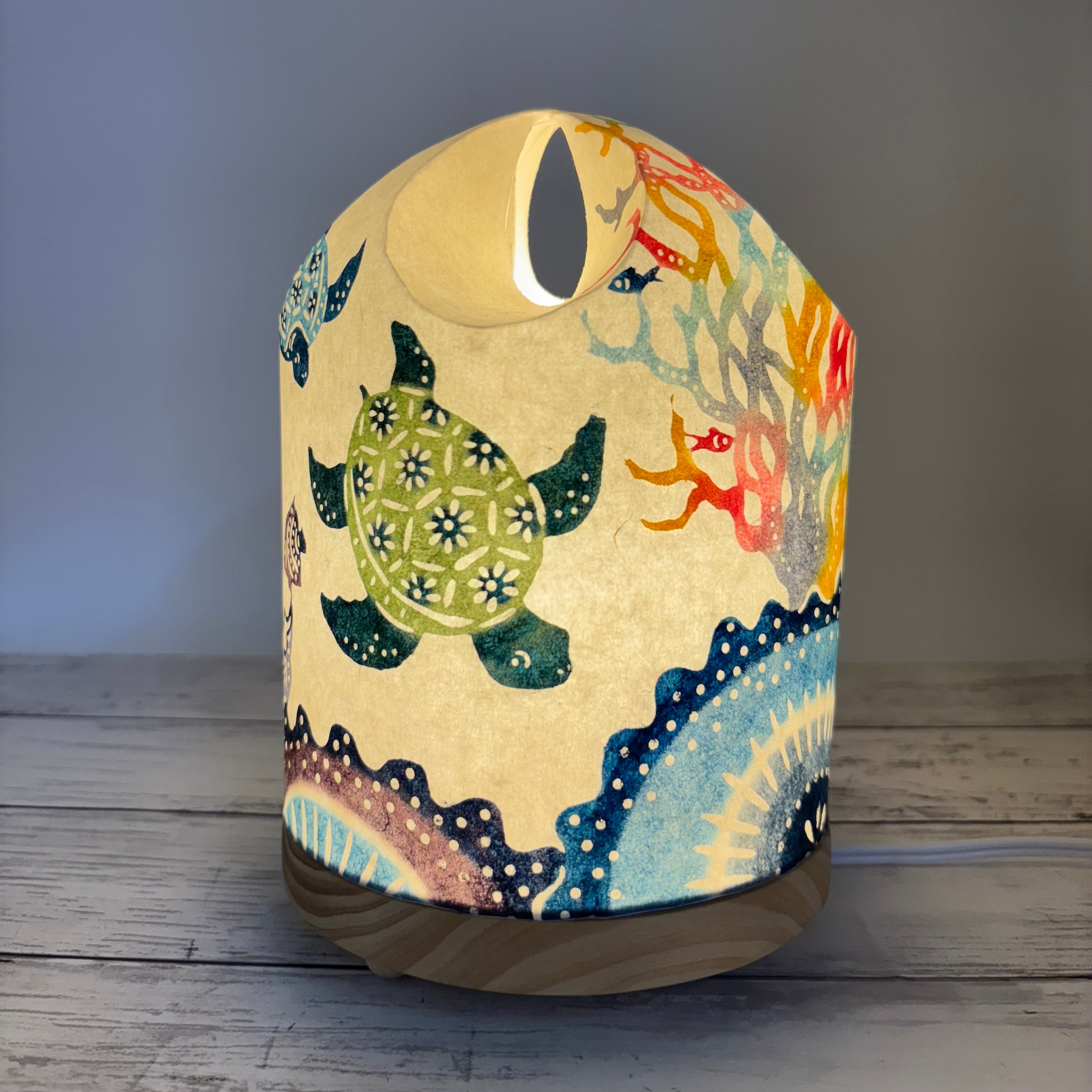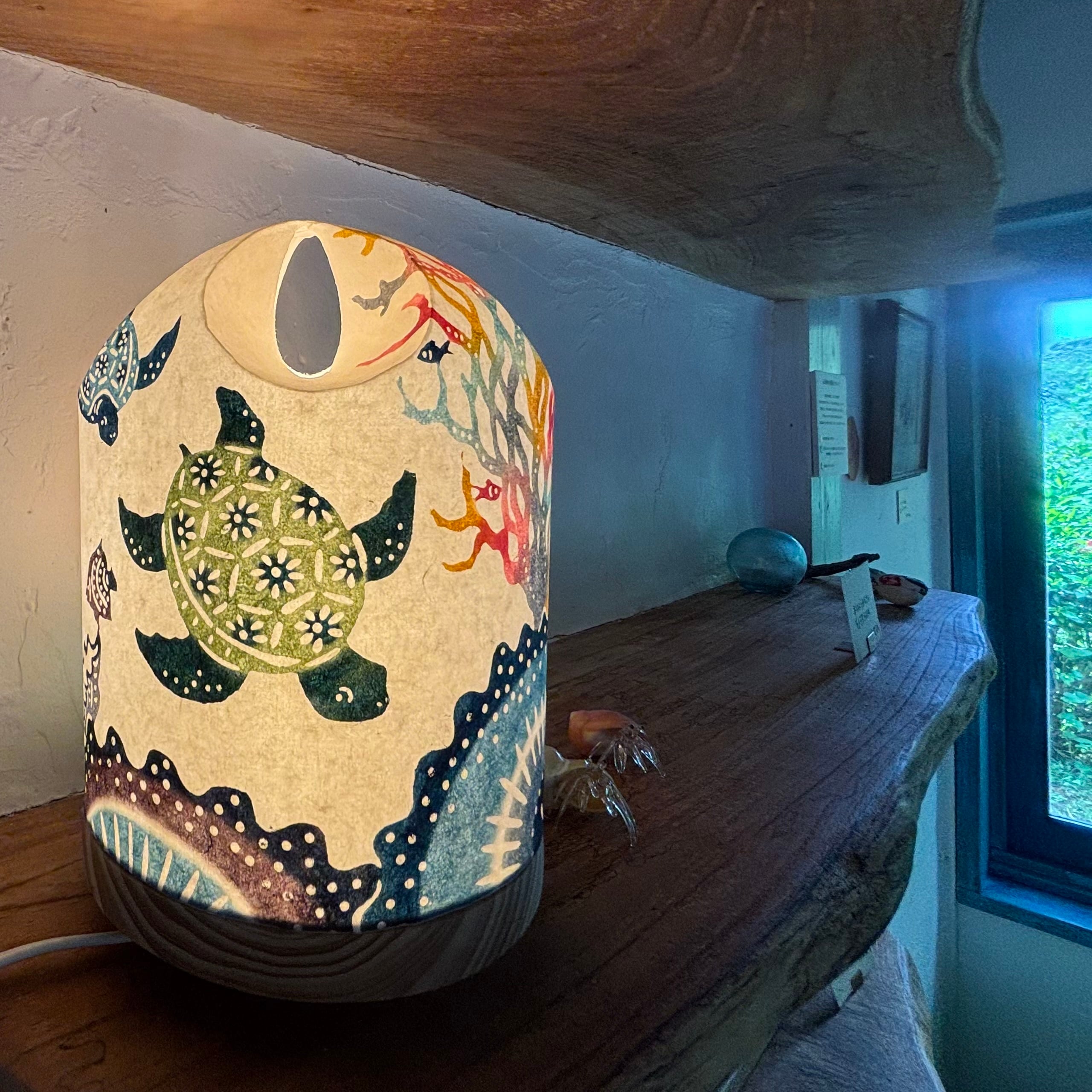 虹亀商店デザインのあかりが映し出す世界は、キラキラ光るテーブル珊瑚の海の中。