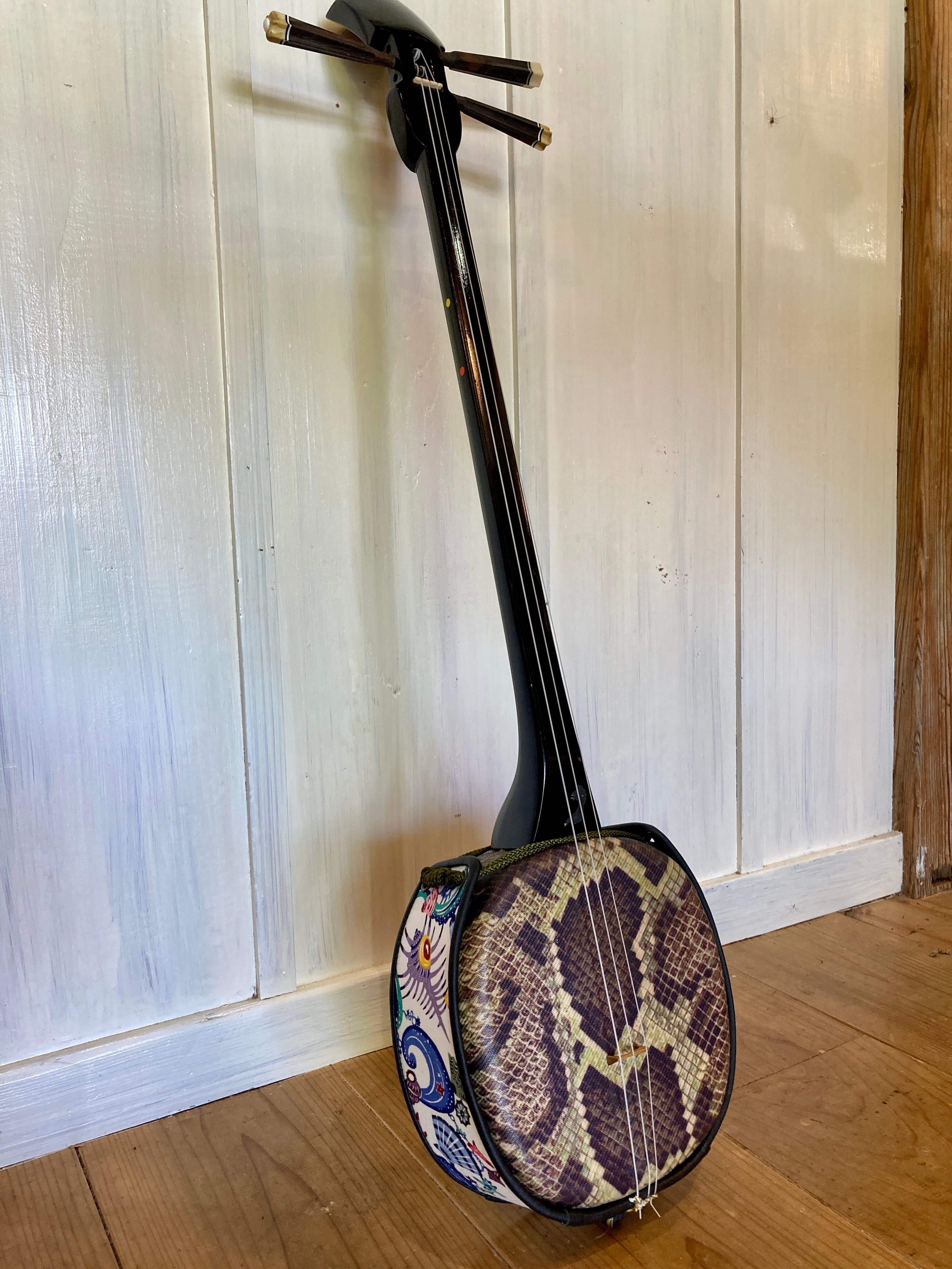 虹亀商店紅型デザインの三線ティーガーです!人とは違うかわいいティーガーで三線の練習も楽しくなりそう! 波打ち際は、浜辺に打ち寄せられたキラキラした宝物みたいな貝と珊瑚のかけらと波を描いた楽しいデザインです! 材質:綿生地、革 紐付き