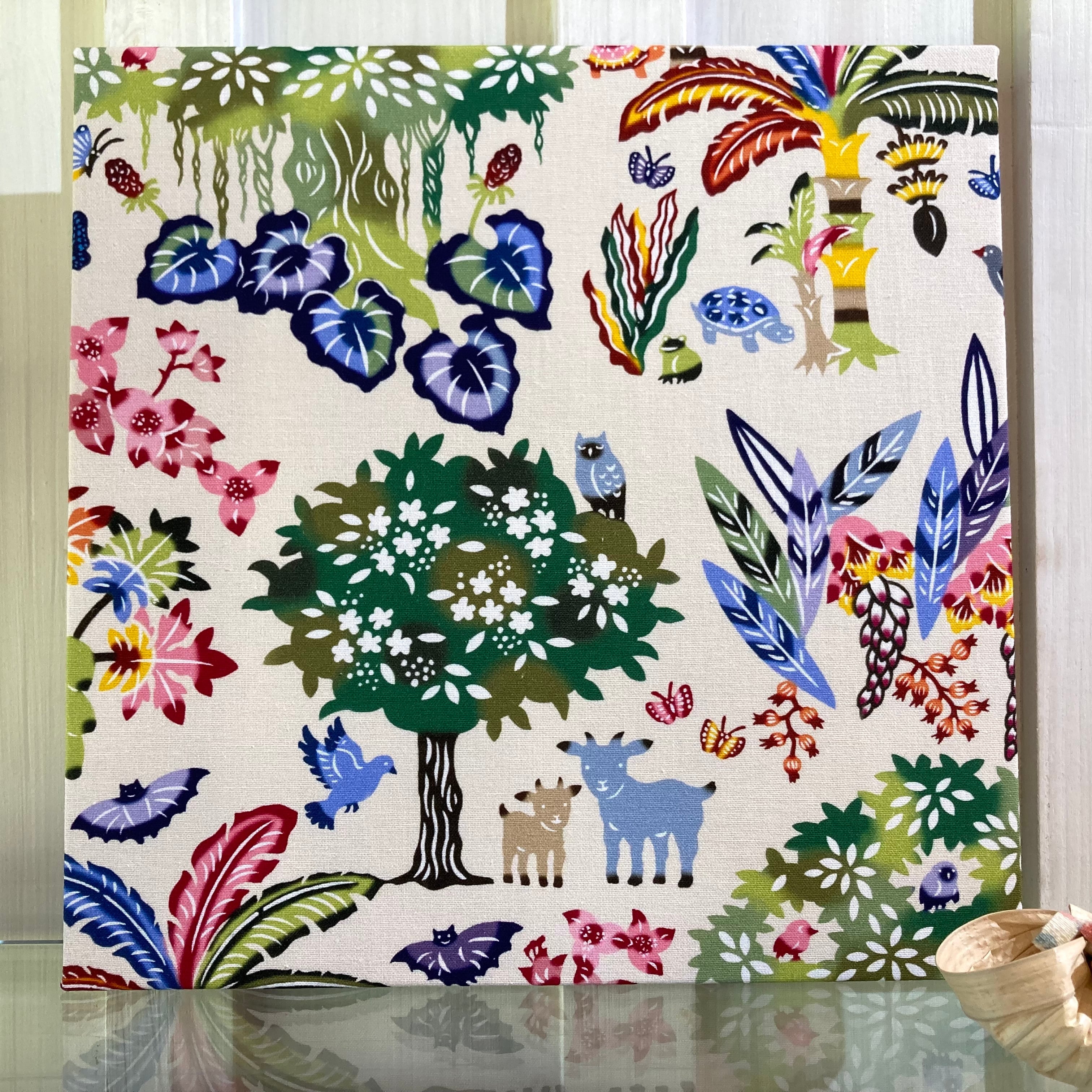 虹亀商店の紅型プリントファブリックボードは、軽くてお手軽に飾れるのが人気の秘密!ファブリックボードが一つあるだけで、お部屋が明るくなるよ!!